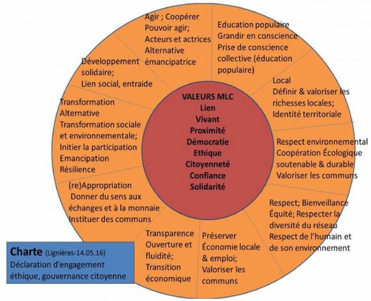 Il existe une charte des monnaies locales complémentaires citoyennes que les associations signent. Cette charte permet de rassembler autour des valeurs communes les acteurs du réseau d'utilisateurs de ces monnaies et fixe un cadre pour leur mise en place. Cependant, sur de nombreux points, chaque région est libre d'adapter son système à la dynamique et aux désirs des personnes actives dans la création de la monnaie.